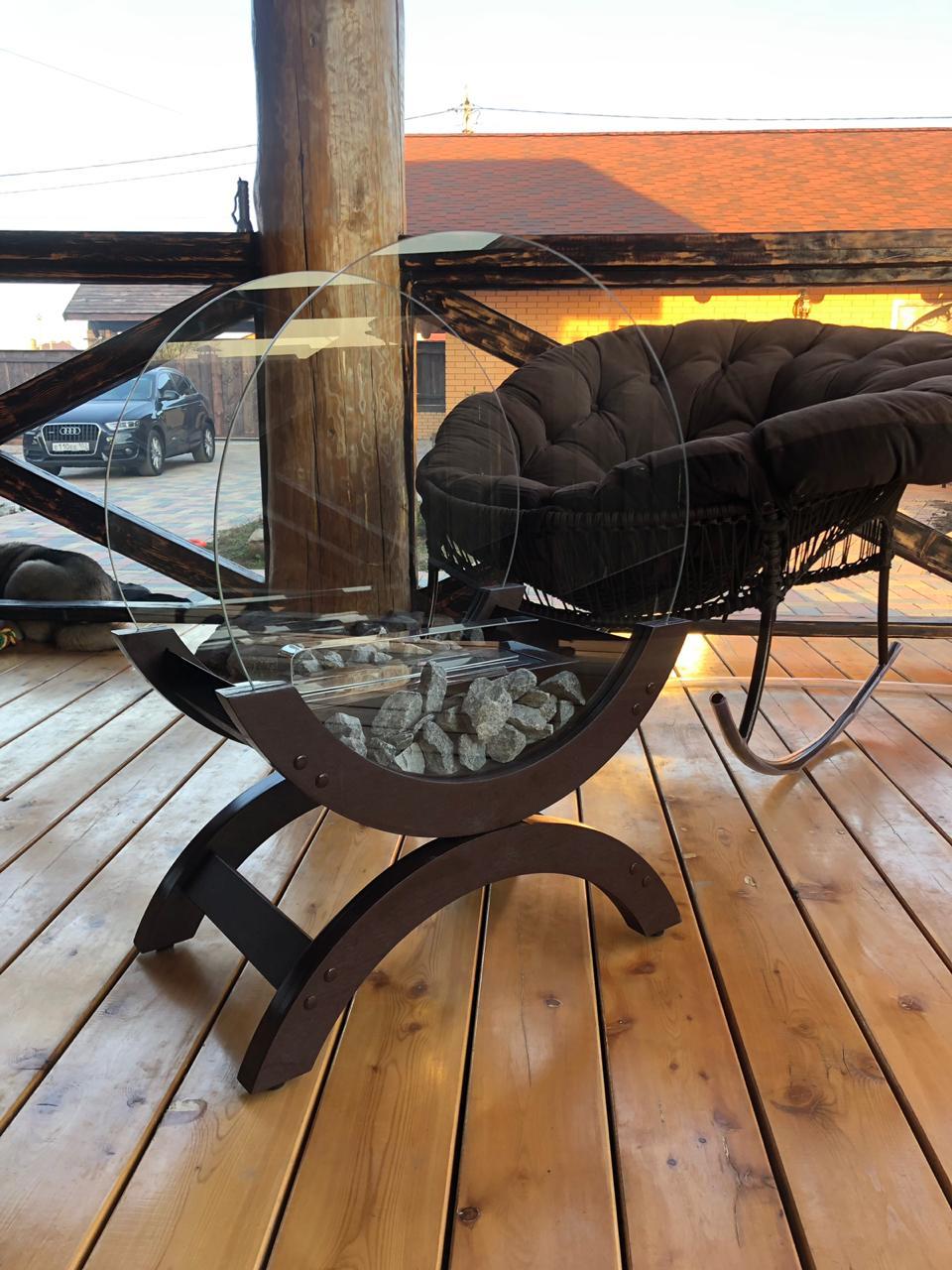 - Комплектация биокамин, пламегаситель, горные камни