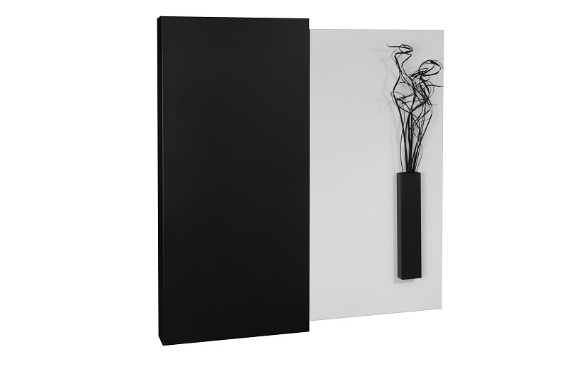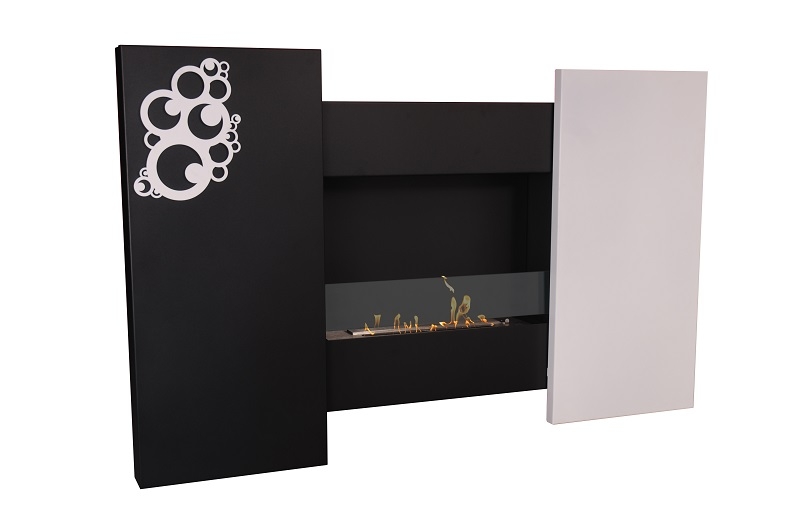 - Дизайнерское панно превращается в современный биокамин благодаря системе раздвижных дверок, скользящих по слайдам на шариковых подшипниках.