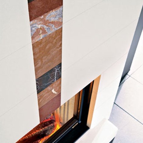 Выбирая материал для облицовки камина, следует уделить внимание нескольким факторам: 1. Во-первых, перед тем как приобретать агрегат, сразу нужно определиться с топочным материалом. Если она выполнена из дерева, то достаточно будет того, чтобы облицовка выдерживала 900°. Если будет использоваться твердое топливо, то нужно отдавать предпочтение материалу, выдерживающему температуру до 1200°. 2. Также следует определиться с местом расположения. Если у вас камин декоративный, который устанавливается в хорошо отапливаемом помещении, то с материалом можно не заморачиваться, т.к. подойдет любой. Если вы собираетесь установить камин, например, на летней веранде, то здесь следует выбирать такую облицовку, которая будет устойчива к морозам. 3. Еще один важный критерий выбора — это влагоустойчивость. При необогреваемом помещении, особенно важно, чтобы этот показатель был высоким. Если не соблюдать этот критерий, то очень скоро облицовка начнет отслаиваться и трескаться. 4. Также на выбор облицовочного материала оказывает влияние масса конструкции, которая в свою очередь зависит от места размещения агрегата. Если камин будет располагаться в частном доме на первом этаже, то на помощь может прийти дополнительный фундамент. В случае, если вы планируете устанавливать его на втором этаж, то здесь вес играет очень большую роль, поскольку перекрытие может попросту не выдержать большого веса каминной установки.