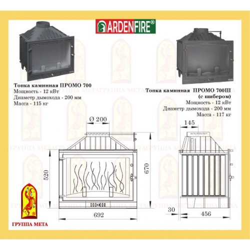 Каминная топка Мета Ardenfire Промо 700Ш