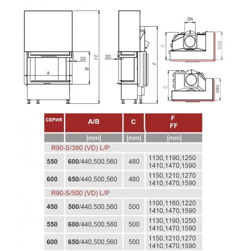 Каминная топка Kobok Corner 830 VD R90-S/500 L/P