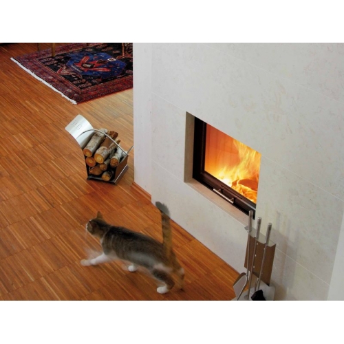 В топке имеется система длительного горения и система чистого стекла. Имеется возможность для подвода дополнительного воздуха из других помещений или улицы для процесса горения, что сводит к минимуму выжигание кислорода в помещении во время работы камина.