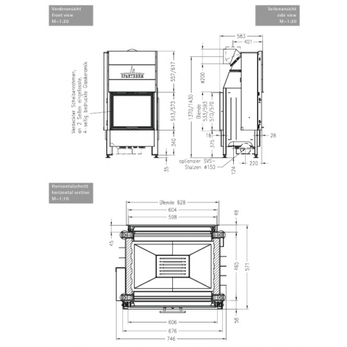 Каминная топка Spartherm Mini S FDh 4S из стали толщиной 4/5 мм с антикоррозийным покрытием. Дверца с широким панорамным керамическим стеклом, которая открывается вбок и вверх. Шамотный кирпич внутри топки увеличивает температуру в топке, накапливает это тепло во время работы топки, и длительное время излучает его после окончания процесса горения.
