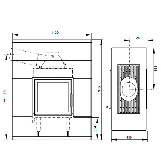 Топка имеет широкоформатное стеклокерамическое окно, дающее прекрасный обзор горящего пламени.