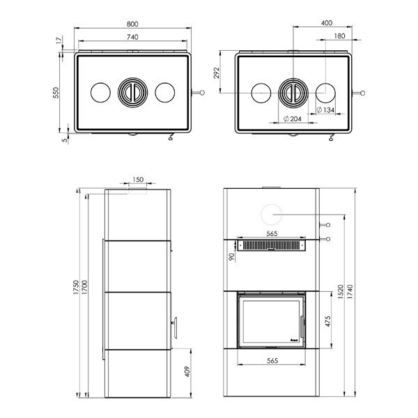 - Диаметр дымохода, (мм) 150
