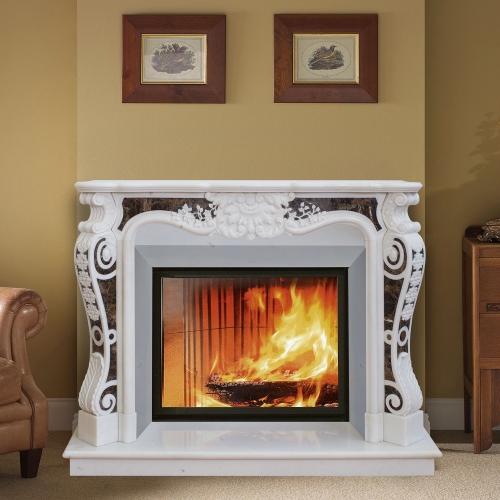 - Подходящие топки: с прямым стеклом с подъемом или боковым открыванием дверцы, открытая топка, электроочаг. В комплект входят плиты для адаптации под топку.