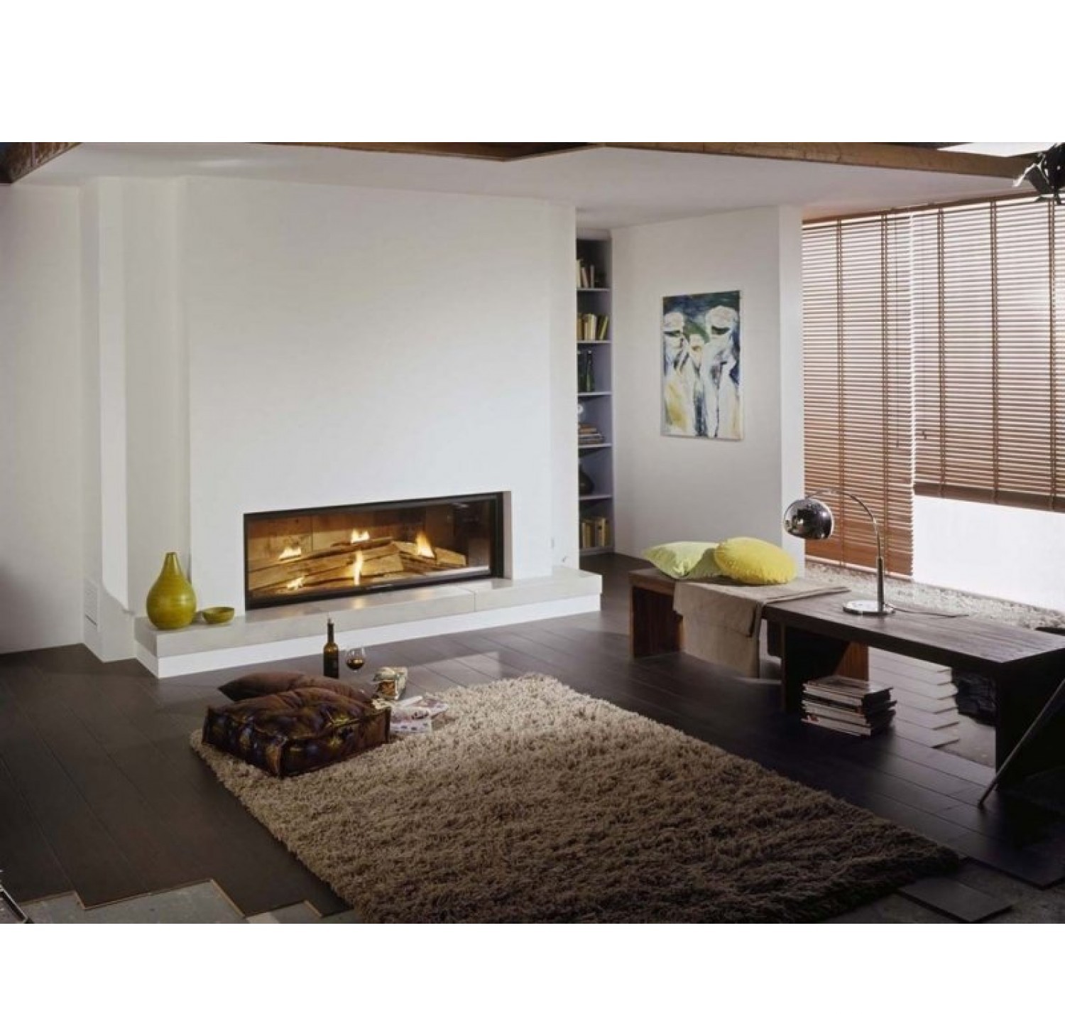 Каминная топка с прямым стеклом. Топочная камера футерована шамотом. Подъёмный механизм двери (система Easy-Lift). Ширина дверки 1660 мм. Высота дверки 538 мм. Возможно подключение воздуха извне.