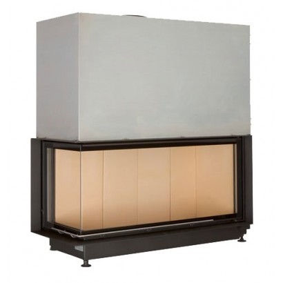 Угловая каминная топка с Г-образным стеклом. Боковое стекло слева. Топочная камера футерована шамотом. Подъёмный механизм двери (система Easy-Lift). Ширина дверки 1167+449 мм. Высота дверки 503 мм. Возможно подключение воздуха извне.