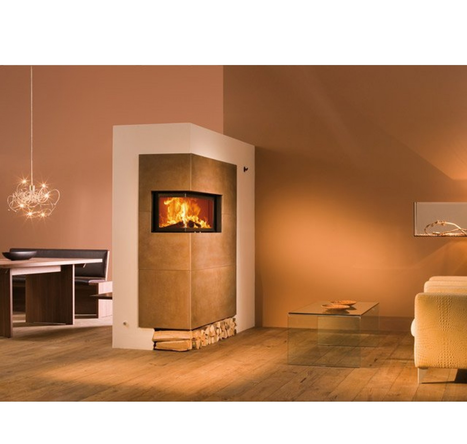 - установка дровяного камина довольно сложна и занимает много времени сама по себе, не говоря уже о попытке вписать такой камин в готовый интерьер; - устройству дымохода следует уделить особое внимание, так как при ошибках в конструкции камин может начать дымить внутрь помещения; - необходимость установки дымохода сильно усложняет процесс размещения камина в городской квартире, особенно, если квартира располагается не на последнем этаже; - необходимо заранее продумать, где будут храниться дрова; - нужно помнить, что при использовании для топки дров потребуется постоянная чистка дымохода от золы;