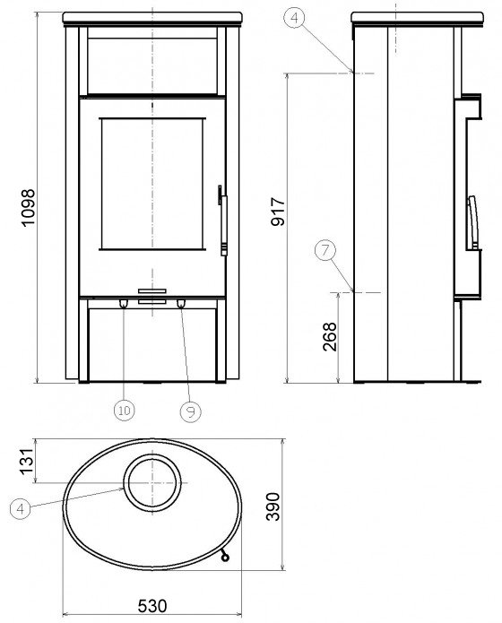 • Диаметр дымохода, (мм)