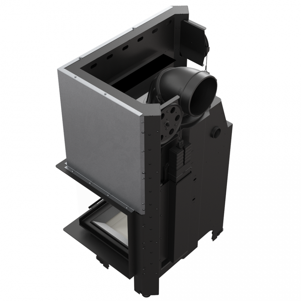 - Тройная система вентиляции камеры сгорания: первичный воздух - направляется на плитку, на которой происходит сгорание; вторичный воздух подается через отверстия в задней стенке. Также в топке применяется система чистого стекла (воздушная завеса).