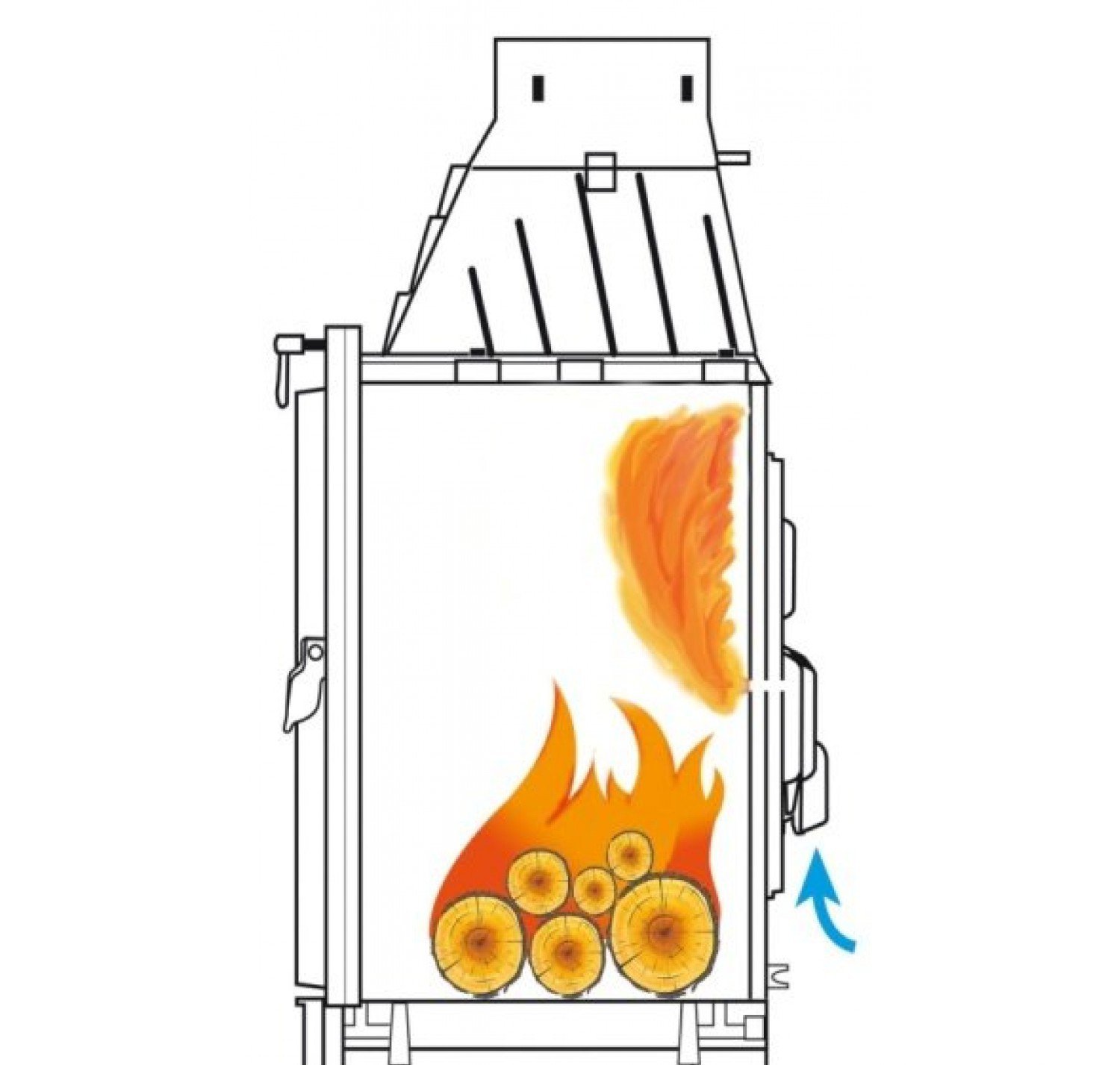 Вместительное внутреннее пространство топки способно принять большой объем дров, и благодаря этому – одной полноценной растопки хватит, чтобы протопить большие домашние пространства до 350 квадратных метров за одну эффективную растопку.